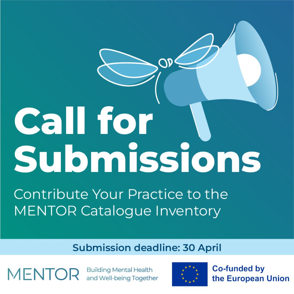 The EU4Health Joint Action Mental Health Together – MENTOR invites practice owners, innovators, organisations, and community stakeholders to submit their evidence-based or promising practices for evaluation and inclusion in the MENTOR Catalogue Inventory – a European repository dedicated to strengthening mental health and well-being across all population groups.
